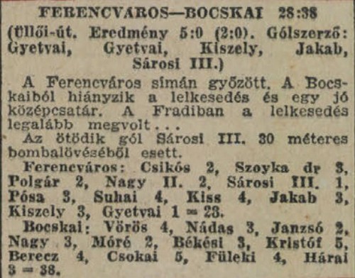 Kategória: 1939/40 | Címke: 1939/40, Bocskay (Debrecen), Csikós Gyula, Gyetvai László, Jakab László, Kiszely István, NB1, Sárosi III. Béla, Suhai István