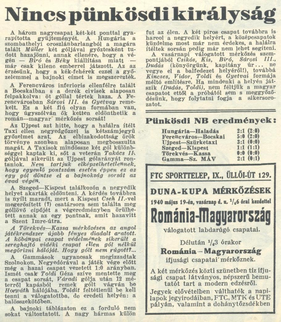 1940.V.12. Ferencváros – Bocskay 5:0