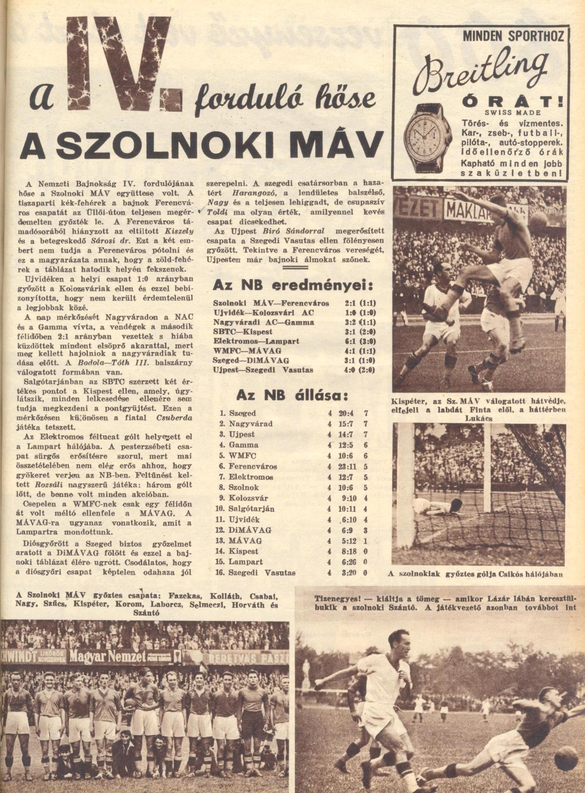 - A Szolnoki MÁV győztes csapata – Fazekas, Kolláth, Csabai, Nagy, Szűcs, Kispéter, Korom, Laborcz, Selmeczi, Horváth és Szántó