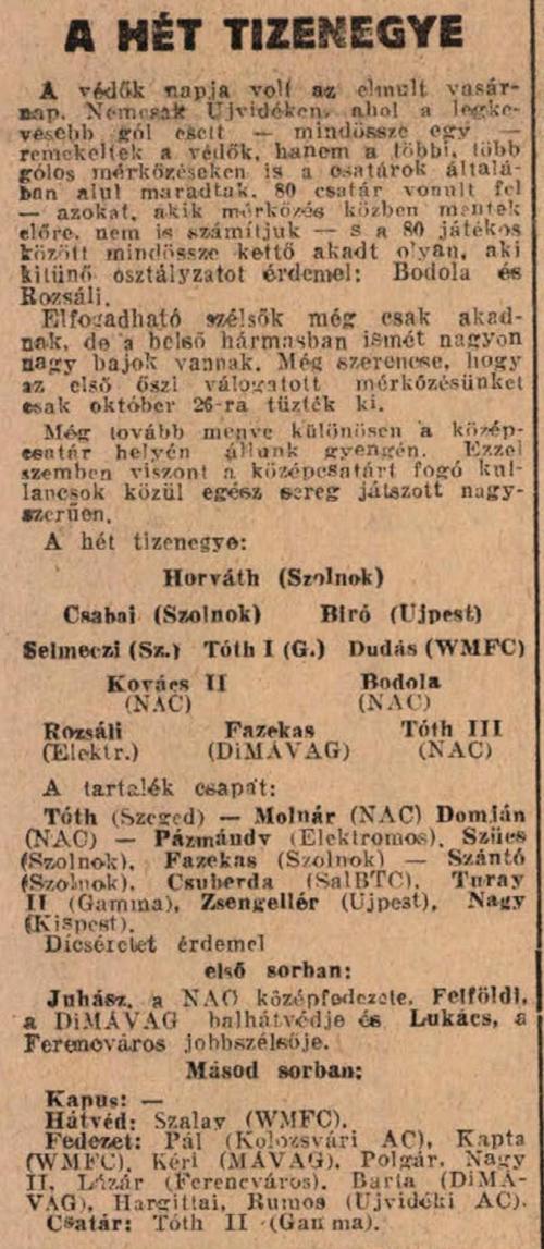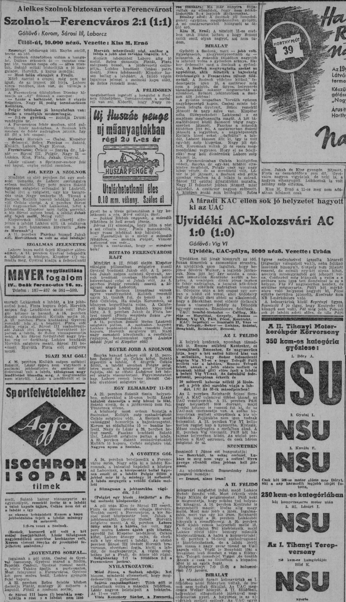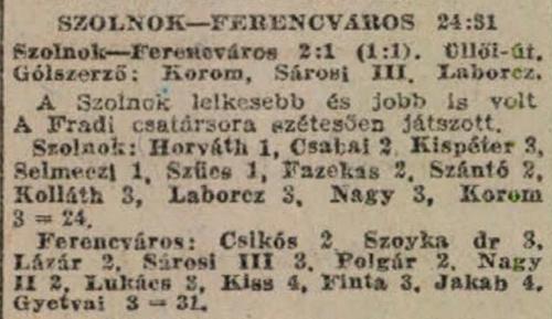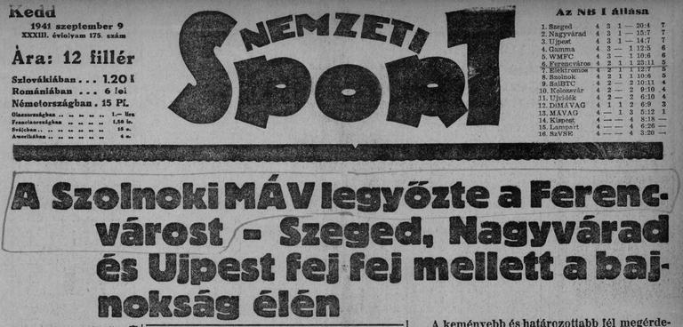 1941.IX.7. Ferencváros – Szolnok 1:2