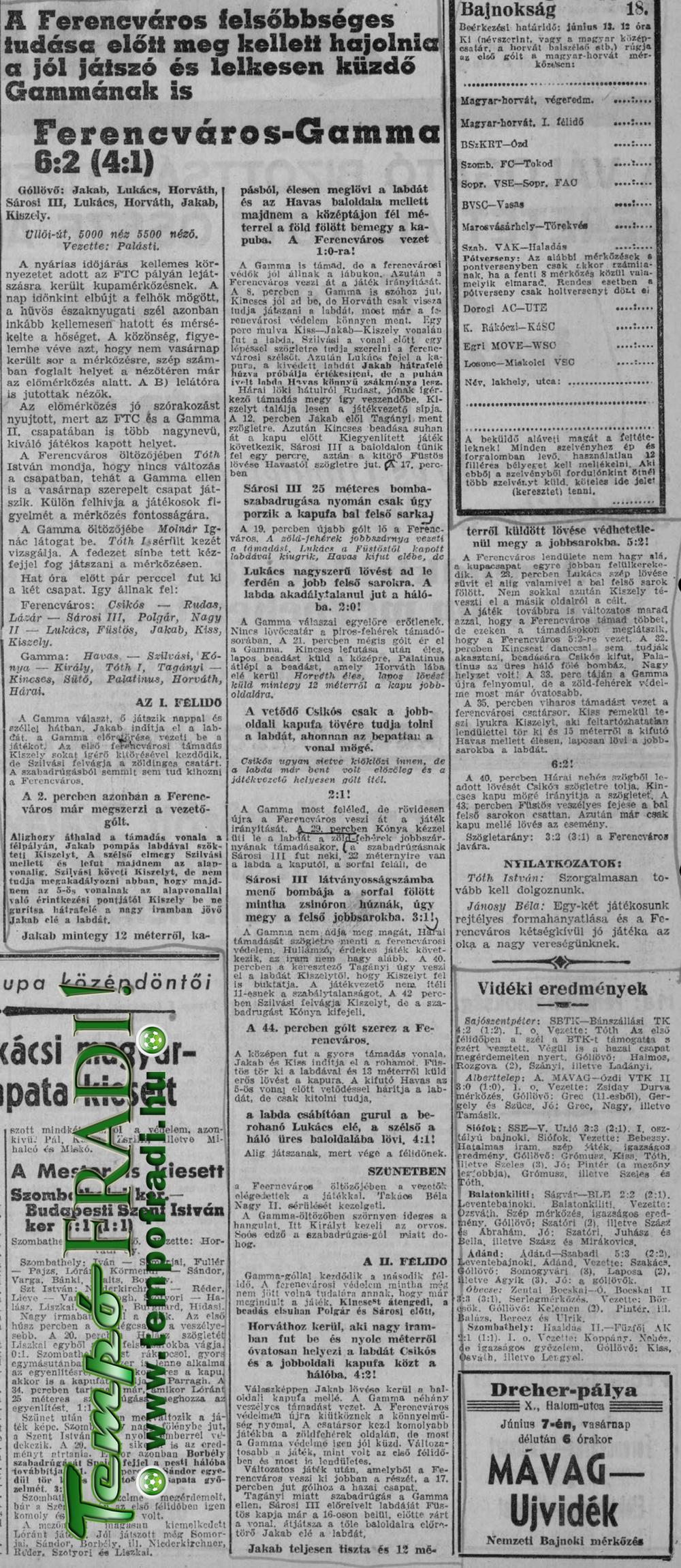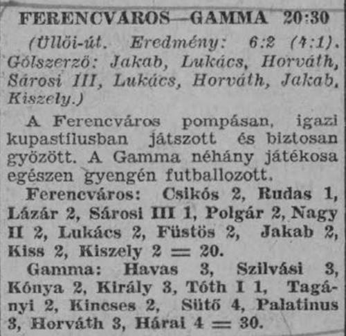 1942.VI.4. MK, Ferencváros – Gamma 6:2 Közzétéve: 2009. február 11. szerda | Szerző: K@rcsi A Ferencváros felsőbbséges tudása előtt meg kellett hajolnia a jól játszó és lelkesen küzdő Gammának is Vélemény, hozzászólás? Válasz megszakításaAz e-mail címet nem tesszük közzé. A kötelező mezőket * karakterrel jelöltük Hozzászólás * Név * E-mail cím * Honlap Δ