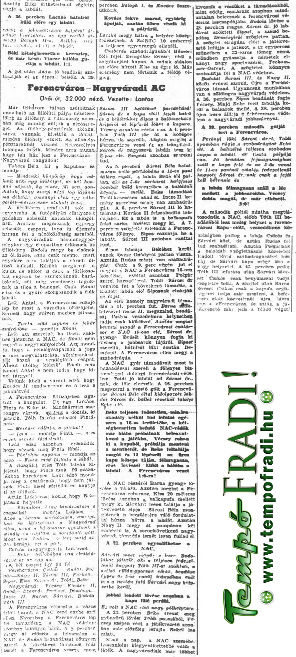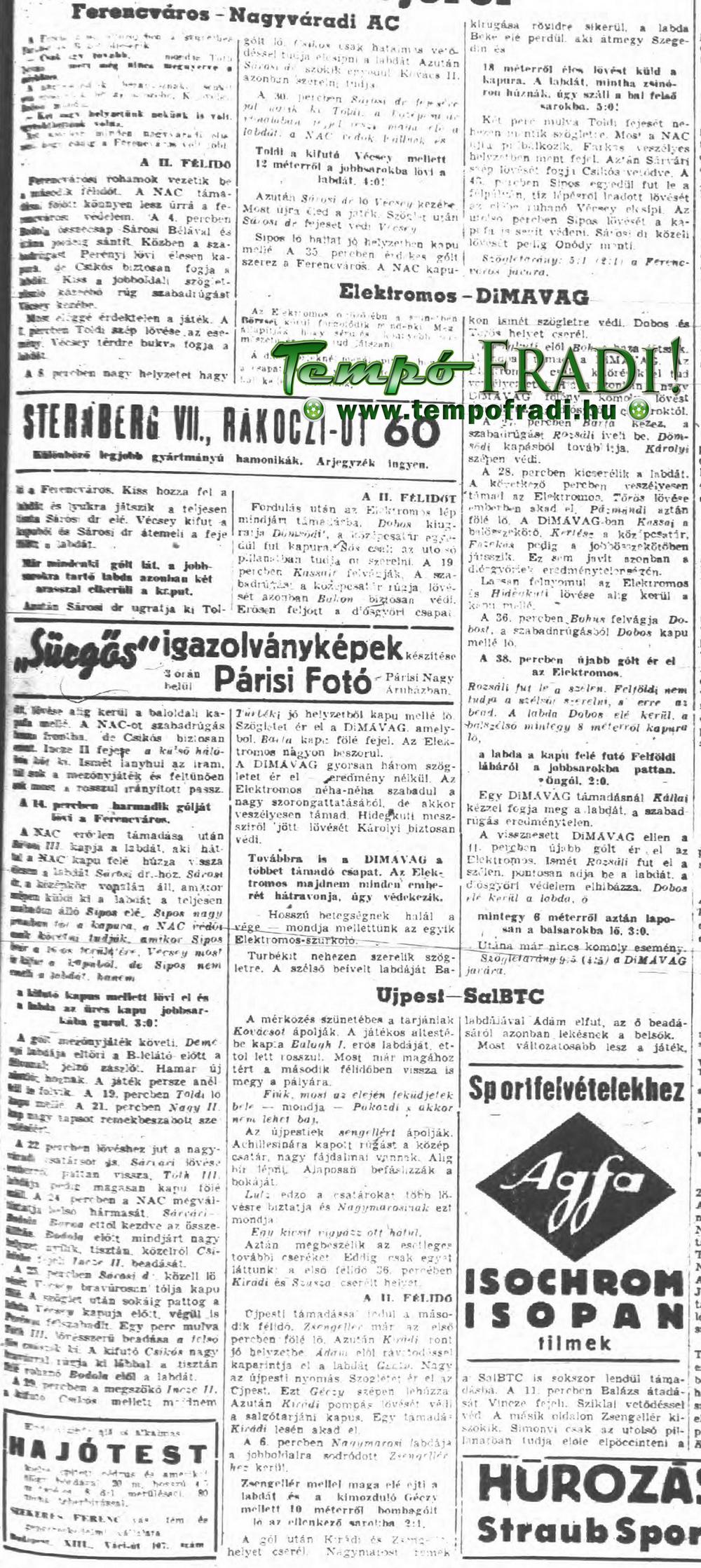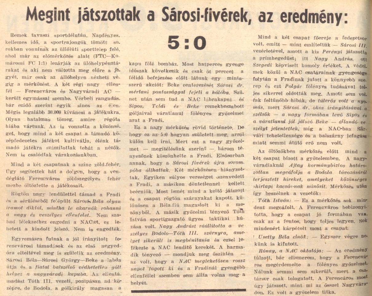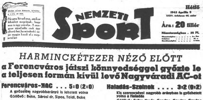 « 1943.III.31. Ferencváros – Magyar Posztó 5:0 (edzőmérkőzés) 1943.IV.7. Ferencváros – FSC ?:? (edzőmérkőzés) »