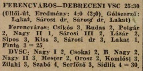 1943.IX.5. Ferencváros – Debrecen 4:0