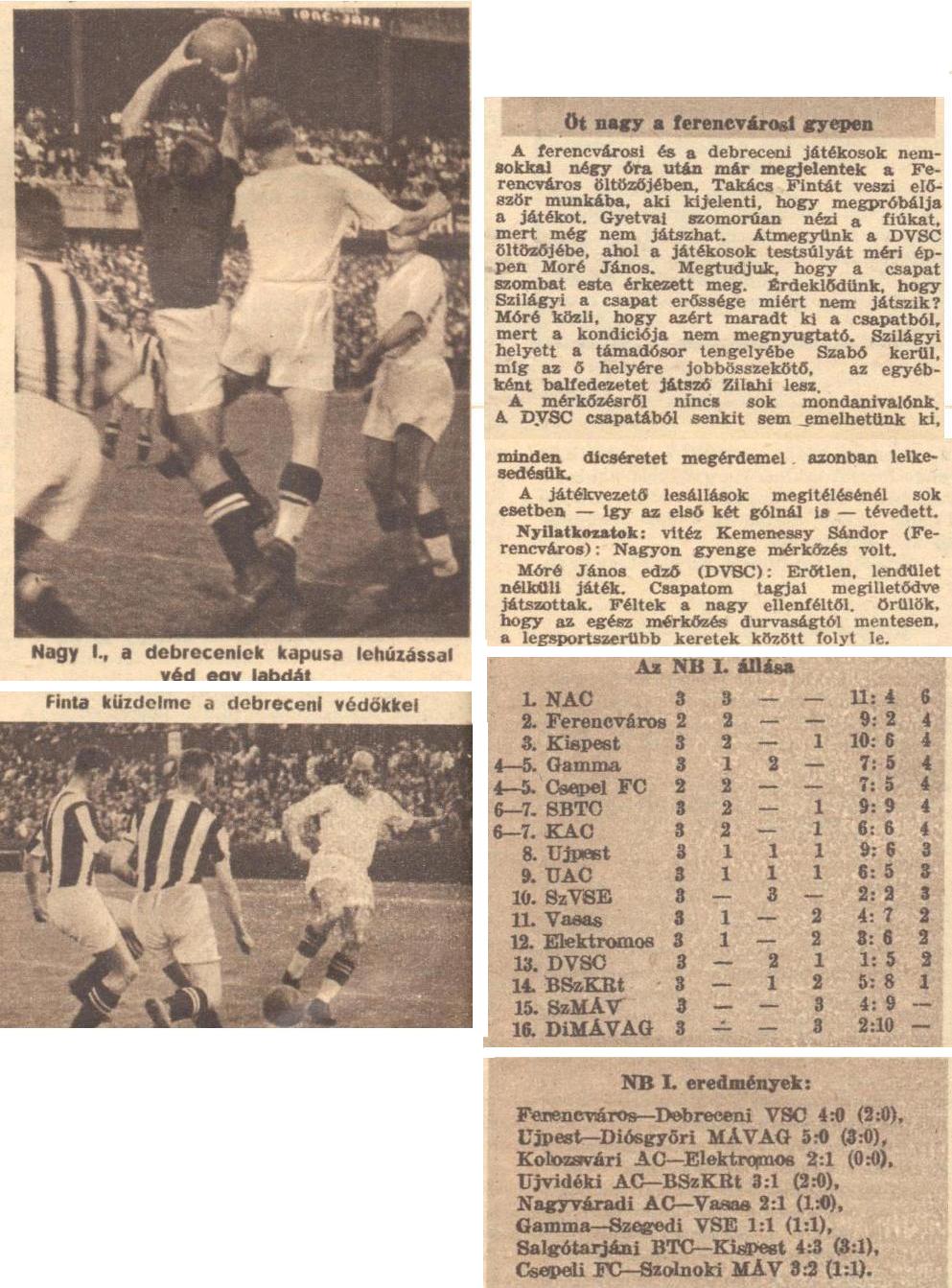 Annak ellenére, hogy 1943-t írunk és a szeptemberi ősz is kellemes időt varázsolt a pálya köré, aránylag kevesen, csak tízezren voltak kíváncsiak a DVSC elleni első bajnoki összecsapásra. A Fradi is kényelmesen készülődött, Lakat Károlyon kívül mindenki nyugodtan várta a kezdést. A fiatal és nagyon tehetséges fedezet, bár bajnoki mérkőzésen csak most lépett másodszor pályára a Fradi első csapatában, nem a mérkőzésdrukk, hanem az újonnan kapott poszt miatt idegeskedett egy kicsit. Eddig főleg jobb oldali fedezetként játszott, de ezen a mérkőzésen Schaffer Alfréd egy sorral előrébb küldte a pályára, ráadásul a balösszekötő helyén kellett bizonyítania, hogy a góllövéshez is ért.