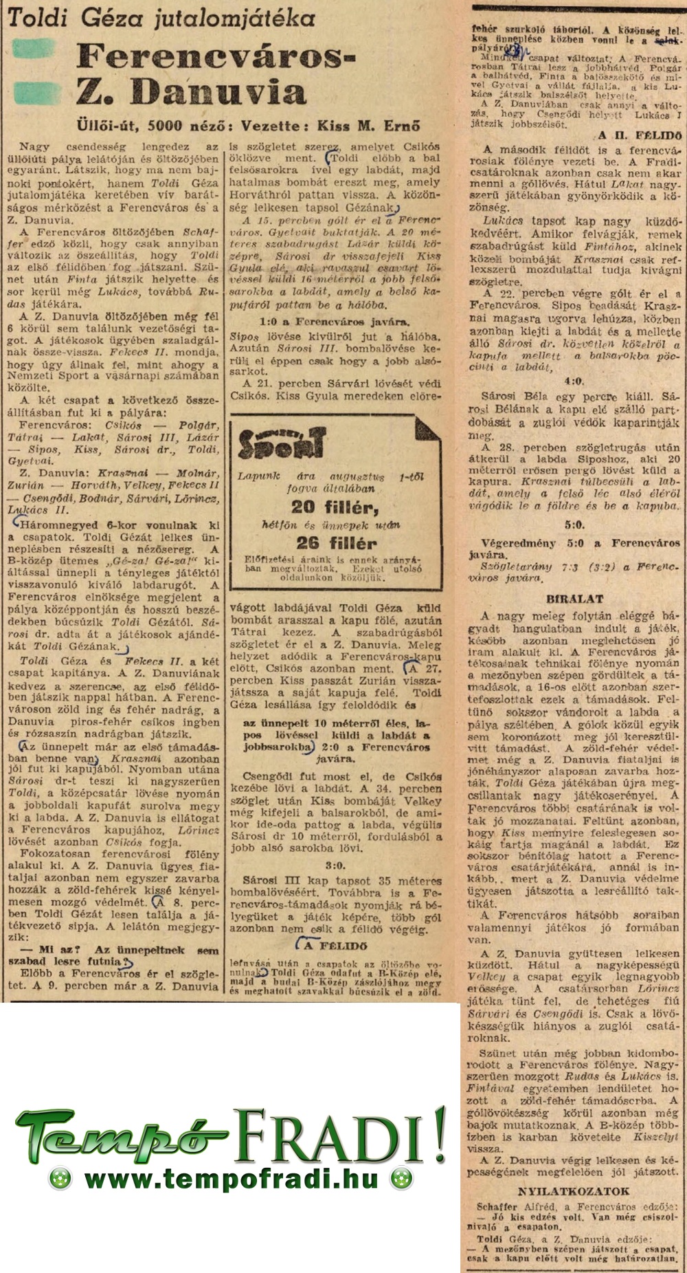 1943.VIII.1. Búcsúmérkőzés, Ferencváros – Z. Danuvia 5:0 Közzétéve: 2009. február 12. csütörtök | Szerző: mjozef22 Toldi Géza jutalomjátéka . . Egy hozzászólás a(z) 11110010111ejegyzéshez L.I. alias kispufi on 2013. március 20. szerda - 13:29 Istenem, milyen megható a mából nézve is. Vagy a mából nézve csak igazán! Ugye a legalsó képek közül a jobboldali előterében Gyetvai Laci bácsit láthatjuk? Vélemény, hozzászólás? Válasz megszakításaAz e-mail címet nem tesszük közzé. A kötelező mezőket * karakterrel jelöltük Hozzászólás * Név * E-mail cím * Honlap Δ