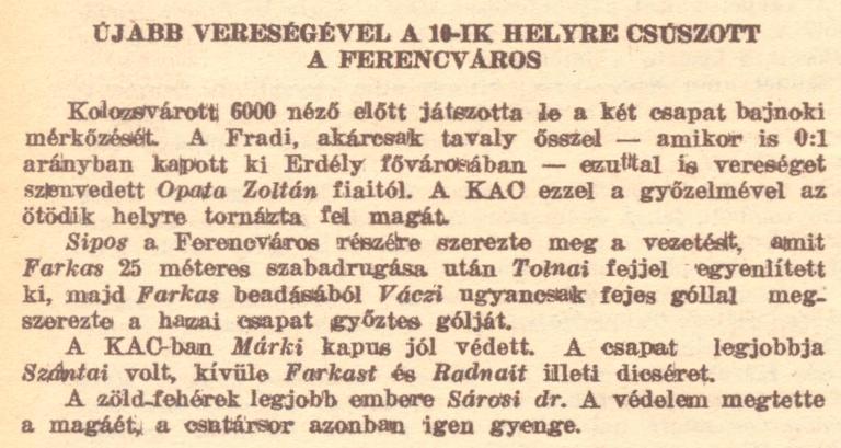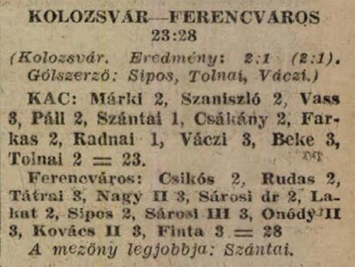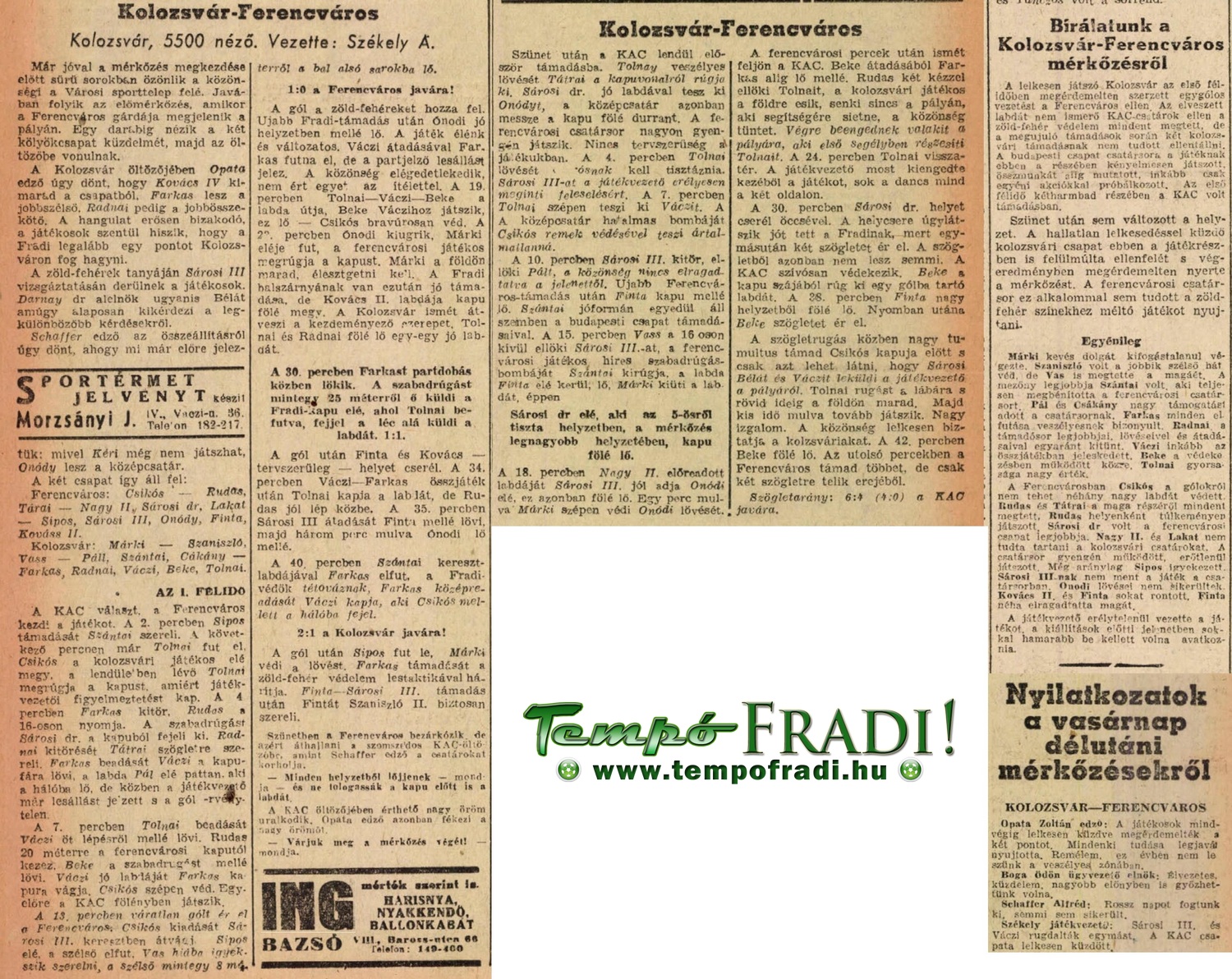 1943.X.17. Kolozsvári AC – Ferencváros 2:1