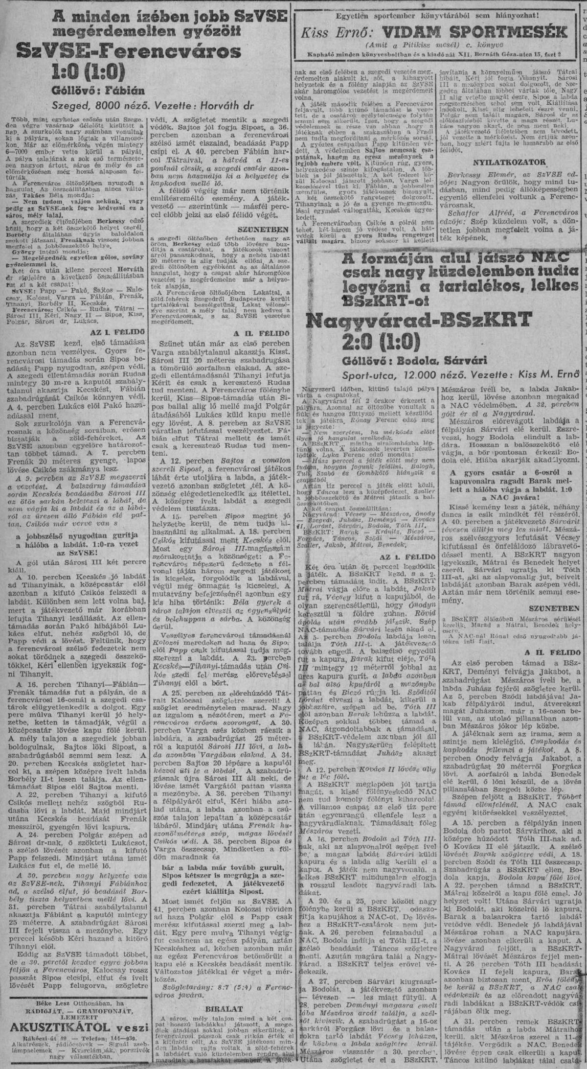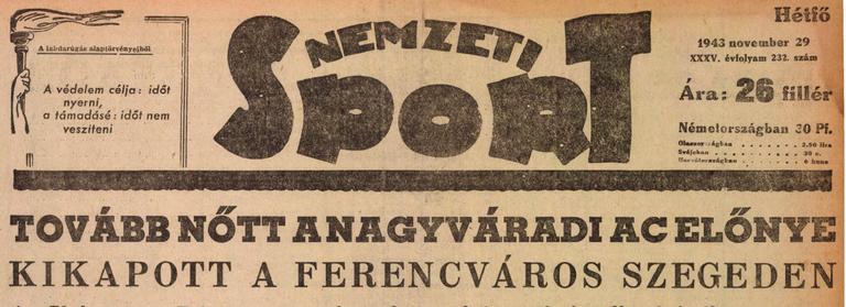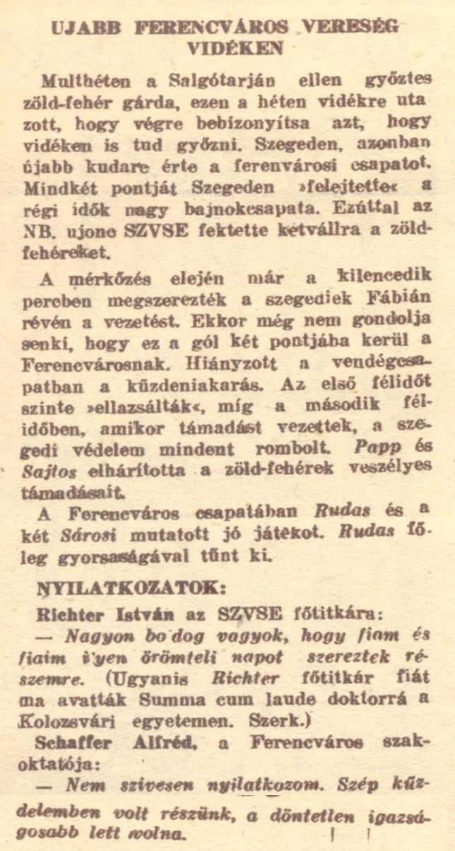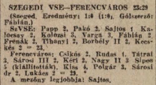 1943.XI.28. Szegedi VSE – Ferencváros 1:0