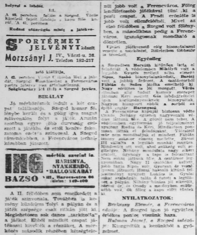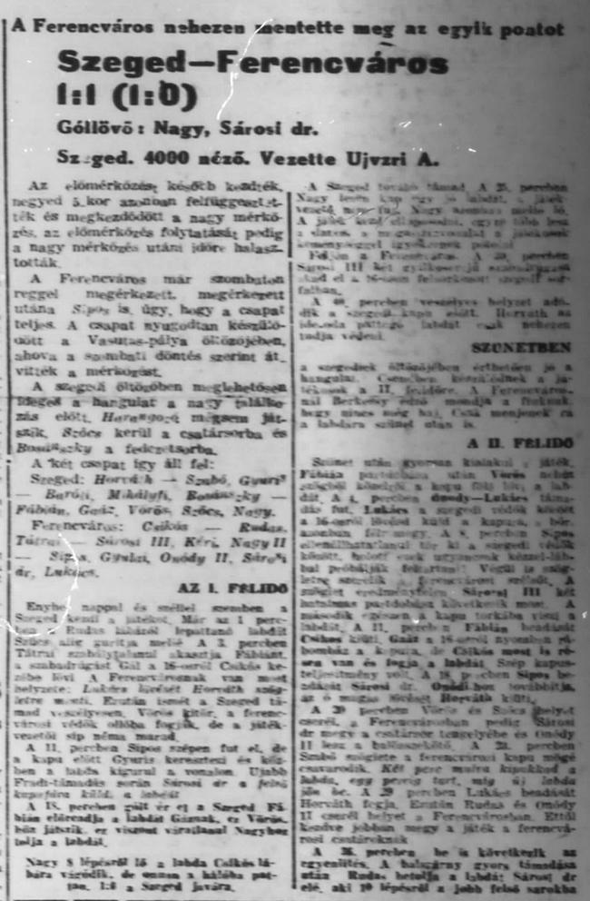 Kategória: 1944-Ősz | Címke: 1944 ősz, 1944/45, NB1, nsmiss50, piros lap (emberhátrány), Rudas Ferenc, Sárosi György dr., Szeged