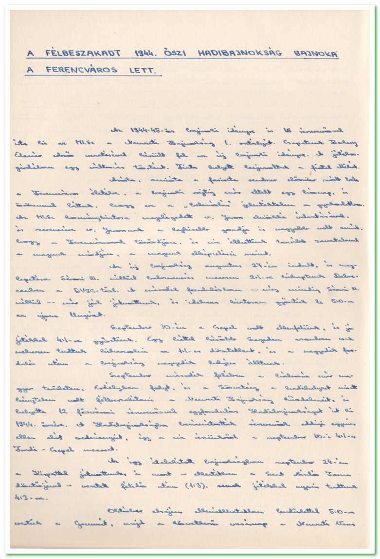 1944 ősz – „ZÖLD-FEHÉR A MI SZINÜNK” – egy kézzel írt történet Közzétéve: 2009. február 13. péntek | Szerző: mjozef22 A félbeszakadt 1944. őszi HADIBAJNOKSÁG bajnoka a Ferencváros lett „ZÖLD-FEHÉR A MI SZINÜNK” II. kötet – Szerző: Hélisz József Egy hozzászólás a(z) 11110011000ejegyzéshez lacimadár on 2013. augusztus 22. csütörtök - 10:16 csodálatos erről a korról Fradi-szemüvegen át olvasni, köszönet érte! Vélemény, hozzászólás? Válasz megszakításaAz e-mail címet nem tesszük közzé. A kötelező mezőket * karakterrel jelöltük Hozzászólás * Név * E-mail cím * Honlap Δ