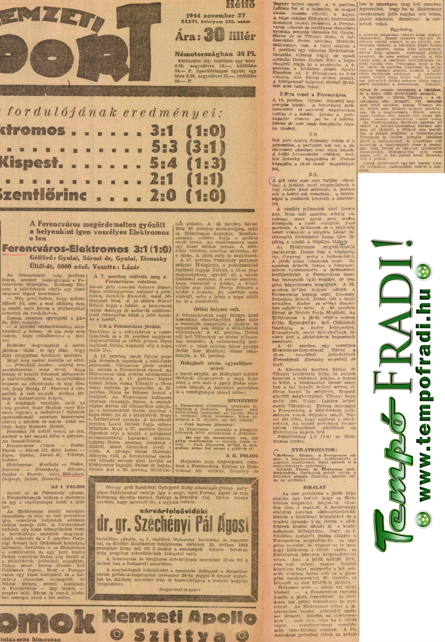 Kategória: 1944-Ősz | Címke: 1944 ősz, Elektromos, Gyulai László, NB1, Sárosi György dr., Sipos Vilmos, Tihanyi András