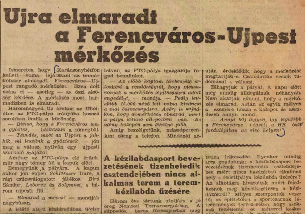 1944.XII.25. Ferencváros – Újpest – ELMARADT