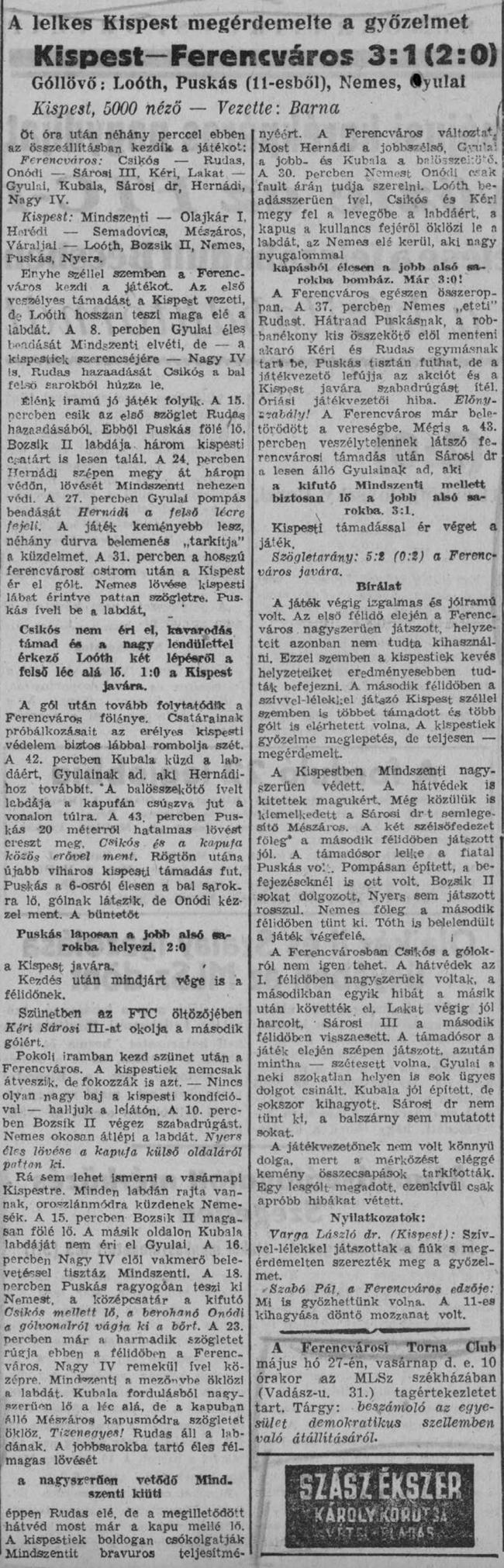 Kategória: 1945 | Címke: 1945 tavasz, Bp. Honvéd (Kispest; KAC), büntető (kihagyott), Gyulai László, Mészáros József, Mike István, Mindszenti Pál, NB1, Puskás Ferenc, Rudas Ferenc