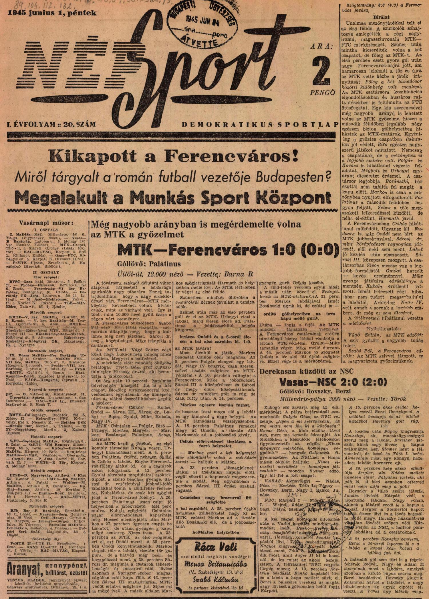 Kategória: 1945 | Címke: 1945 tavasz, Bosánszky Jenő, MTK (MTK-VM; Hungária), NB1, Polgár Gyula, Rudas Ferenc