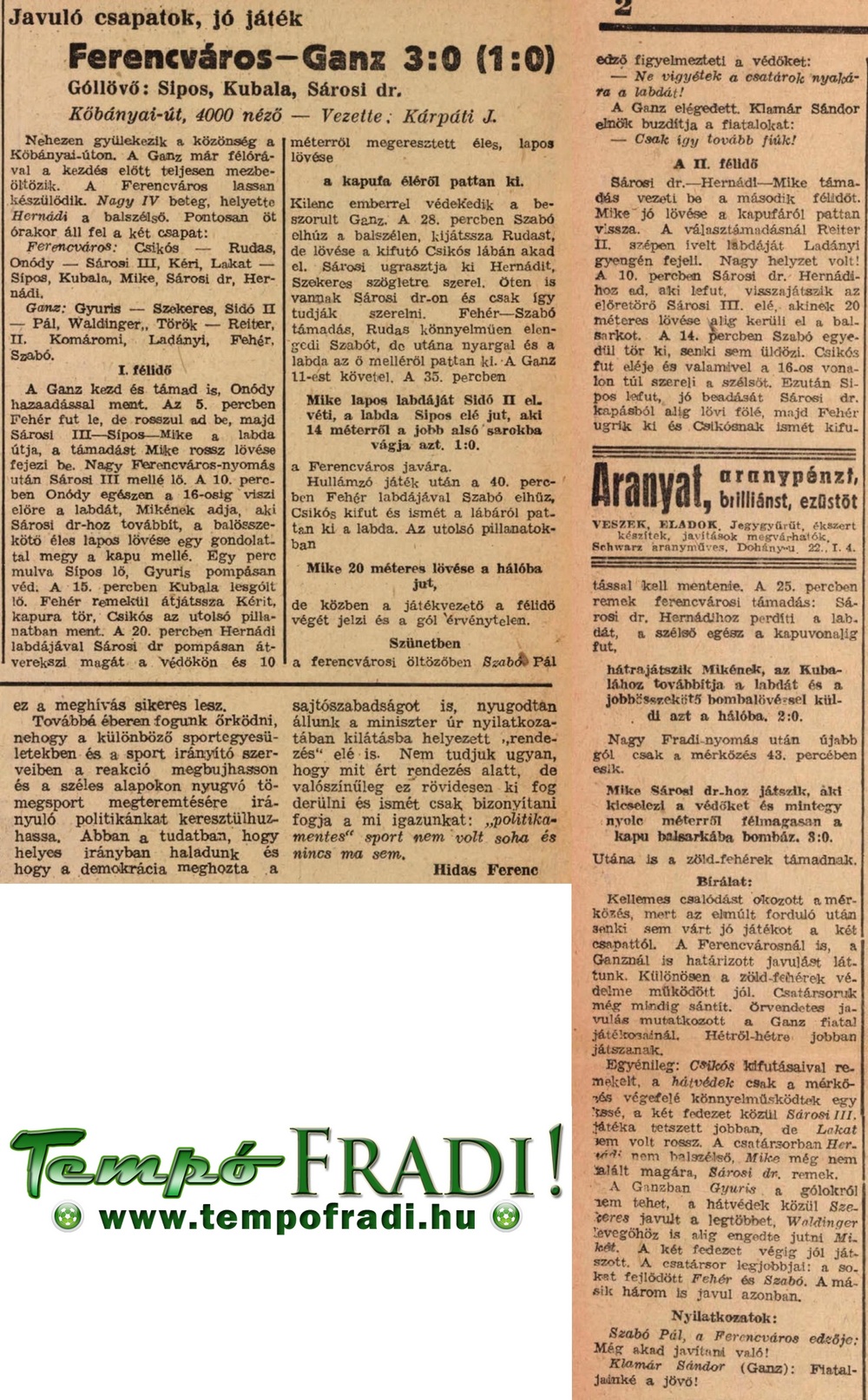 1945.VI.3. Ganz – Ferencváros 0:3