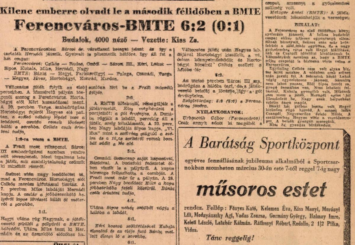 1946.III.24. BMTE – Ferencváros 2:6