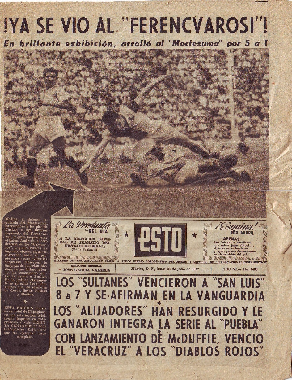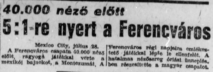1947.VII.27. UD Moctezuma – Ferencváros 1:5 Közzétéve: 2009. február 16. hétfő | Szerző: K@rcsi 40 000 néző előtt 5:1-re nyert a Ferencváros (Köszönet Dr. Csanádi Árpád özvegyének, aki ezt a korabeli újságot átadta az FTC Baráti Kör illetve az FTC Múzeum részére) Egy hozzászólás a(z) 11110011011ejegyzéshez admin on 2024. október 29. kedd - 12:08 Vélemény, hozzászólás? Válasz megszakításaAz e-mail címet nem tesszük közzé. A kötelező mezőket * karakterrel jelöltük Hozzászólás * Név * E-mail cím * Honlap Δ