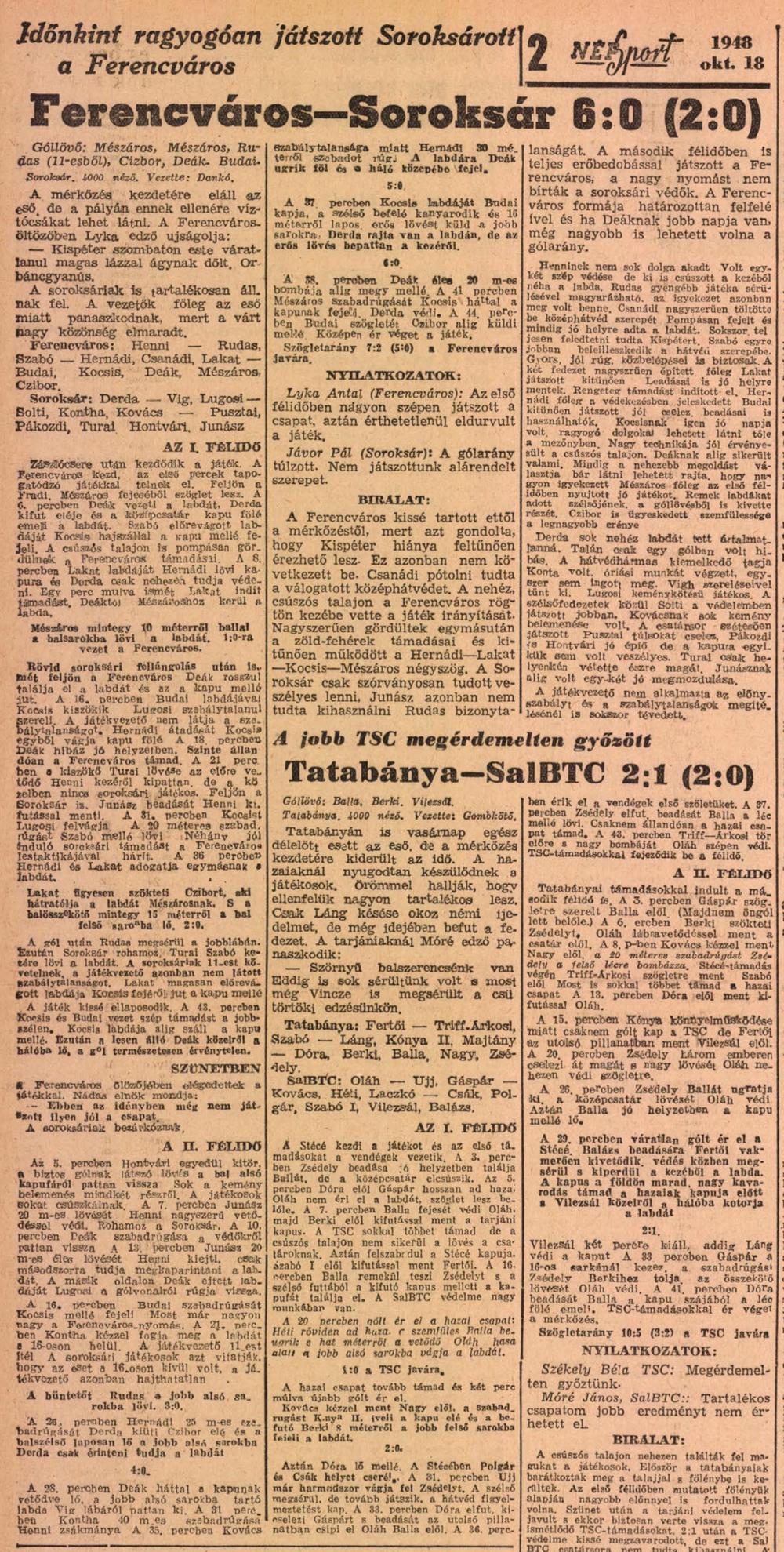 Kategória: 1948/49 | Címke: 1948/49, Budai László, büntető (értékesített), Czibor Zoltán, Deák Ferenc, Kocsis Sándor, Mészáros József, NB1, Rudas Ferenc, Soroksár