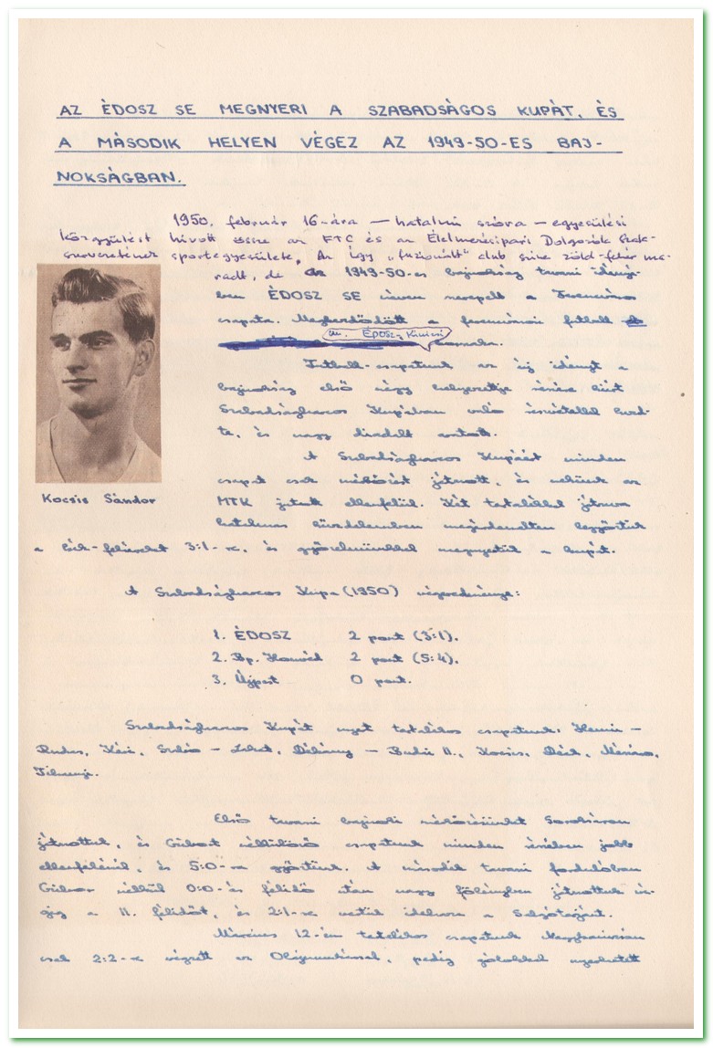 1949/50 – „ZÖLD-FEHÉR A MI SZINÜNK” – egy kézzel írt történet Közzétéve: 2009. február 19. csütörtök | Szerző: mjozef22 AZ ÉDOSZ SE MEGNYERI A SZABADSÁGHARCOS KUPÁT, ÉS A MÁSODIK HELYEN VÉGEZ AZ 1949/50-ES BAJNOKSÁGBAN Vélemény, hozzászólás? Válasz megszakításaAz e-mail címet nem tesszük közzé. A kötelező mezőket * karakterrel jelöltük Hozzászólás * Név * E-mail cím * Honlap Δ