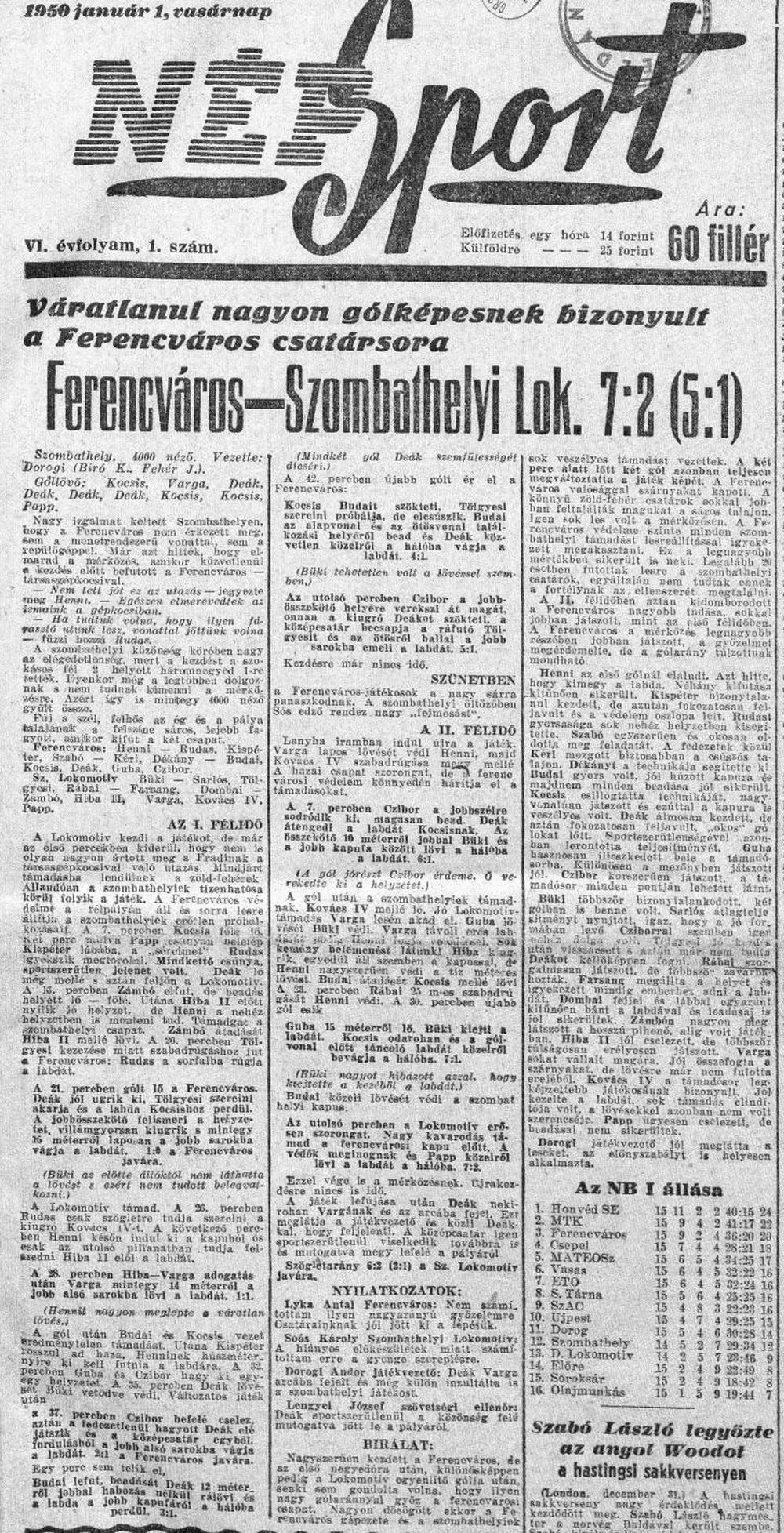 Amikor először szembesültem a dátummal, egy pillanat erejéig azon csodálkoztam, hogyan is lehet szilveszter napján bajnokit tartani, hiszen akkor évet kell búcsúzatni, önfeledten várni az újév betoppanását, mely egy új évtizedet hozott el. A pezsgő, a szerpentin és a tánc helyett a focipályán járták a csárdást. Már majdnem hozzáfogtam egy nótás kedvű beharangozó írásához, amikor a meccs tudósítása melletti flekken megpillantottam egy főcímet: „ÚJ ÉV, ÚJ TERV, ÚJ FELADATOK”. A dátum és a hangzatos cím pillanatok alatt kapcsolódott össze. A Rákosi féle féktelen diktatúra éppen 1950. január 1-től lendült „munkába”. 1950–53 között közel 1 millió embert vontak ügyészi eljárás alá, és a legtöbbjük ellen vádat is emeltek. Budapesthez csatoltak számos környékbeli települést, és több ezer családot kitelepítettek a fővárosból. Elindult a totális diktatúra kiépítése, melyből a magyar sport és benne a labdarúgás sem maradhatott ki.