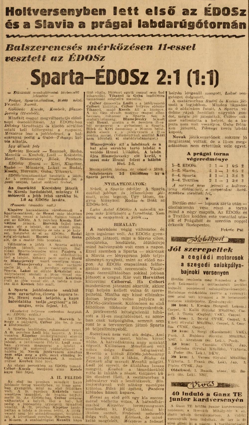 1950.IV.10. Húsvéti torna, Sparta Praha – ÉDOSZ 2:1