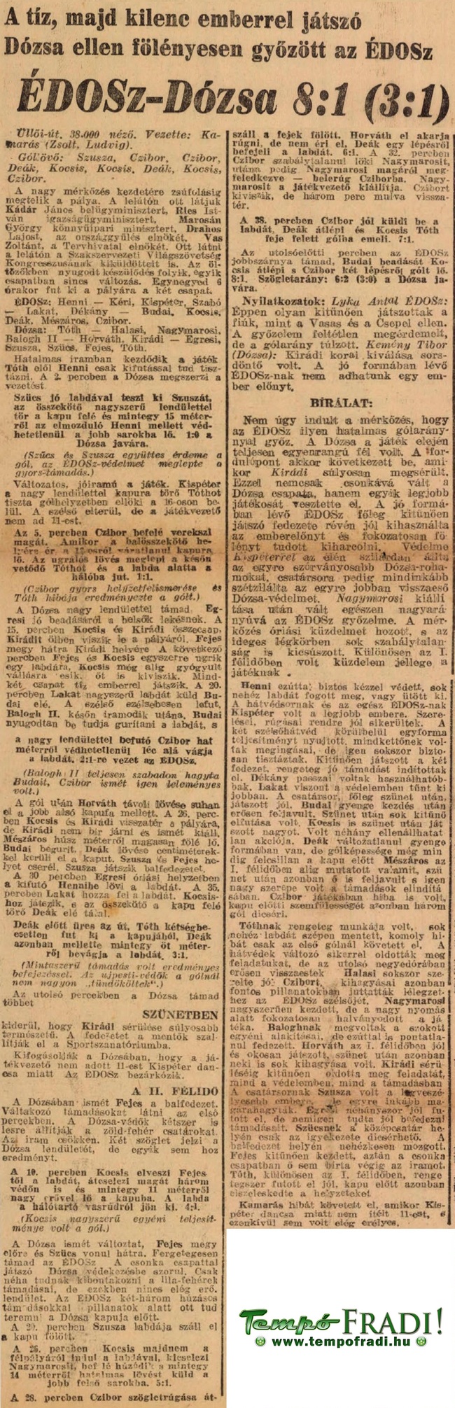 Fradisták, nem ünneplünk? Egyik legnagyobb győzelmünk !!! Igaz, már ÉDOSZ név alatt… lehet, hogy ezért felejtettük el? Vagy azért, mert a következő héten egy hasonló nagy zakót kaptunk az álneves-álruhás MTK-tól? Vagy azért, mert az akkori szurkolók már előre tudták, hogy a Honvédot úgysem verhetjük meg? Elfelejtettük a történelmünk egyik legnagyobb diadalát!
