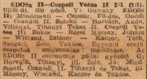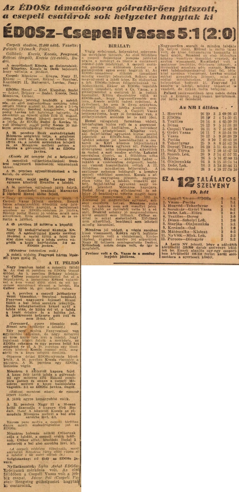 1950.V.7. Csepeli Vasas – ÉDOSZ 1:5 Közzétéve: 2009. február 19. csütörtök | Szerző: K@rcsi Az ÉDOSz támadósora gólratörően játszott, a csepeli csatárok sok helyzetet hagytak ki Vélemény, hozzászólás? Válasz megszakításaAz e-mail címet nem tesszük közzé. A kötelező mezőket * karakterrel jelöltük Hozzászólás * Név * E-mail cím * Honlap Δ