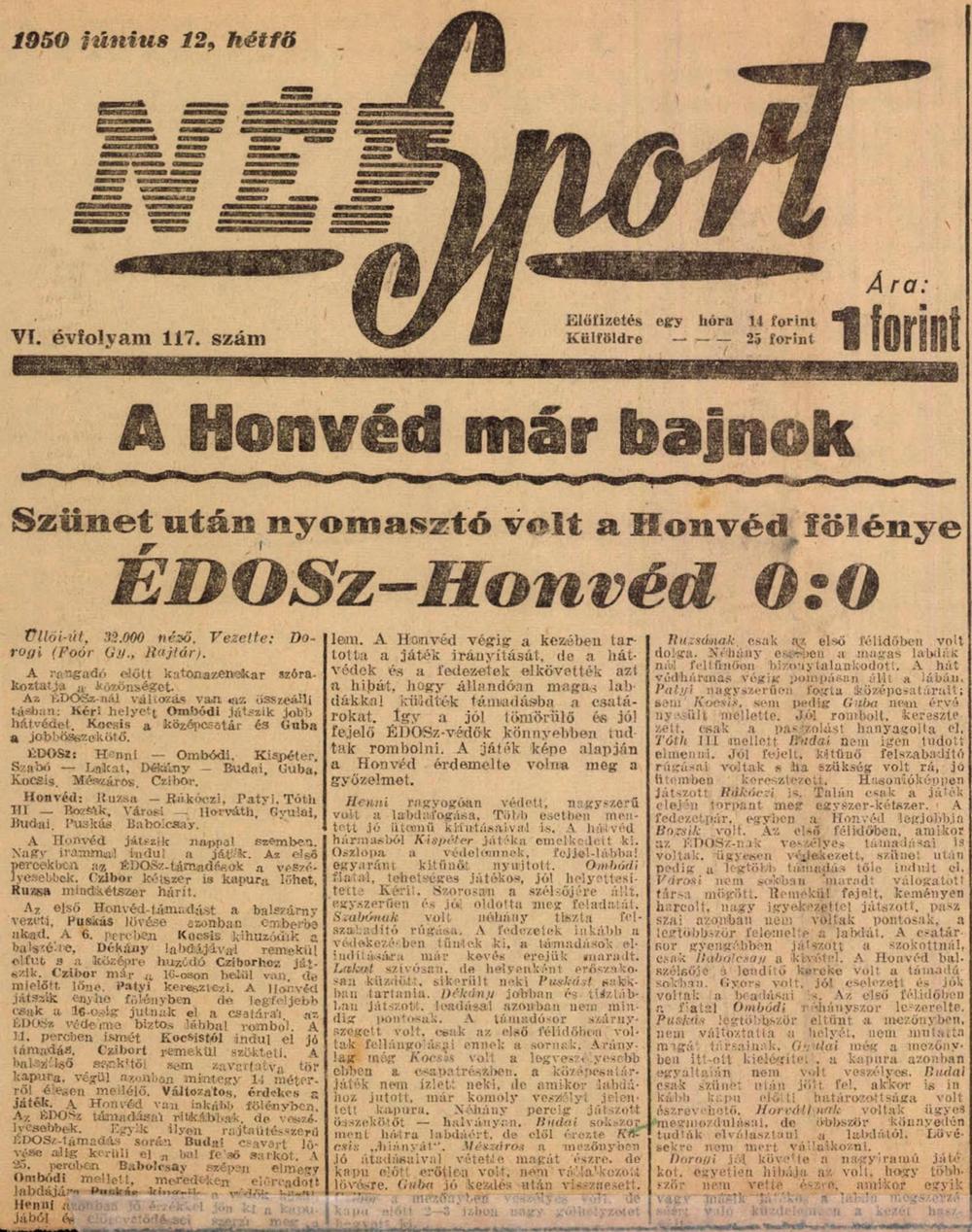 1950.VI.11. ÉDOSZ – Honvéd 0:0