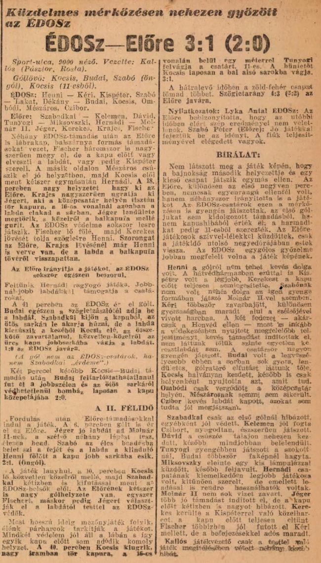1950.VI.18. Előre – ÉDOSZ 1:3