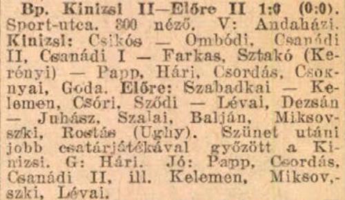 1951.III.25. Bp. Kinizsi – Győri Vasas 1:1