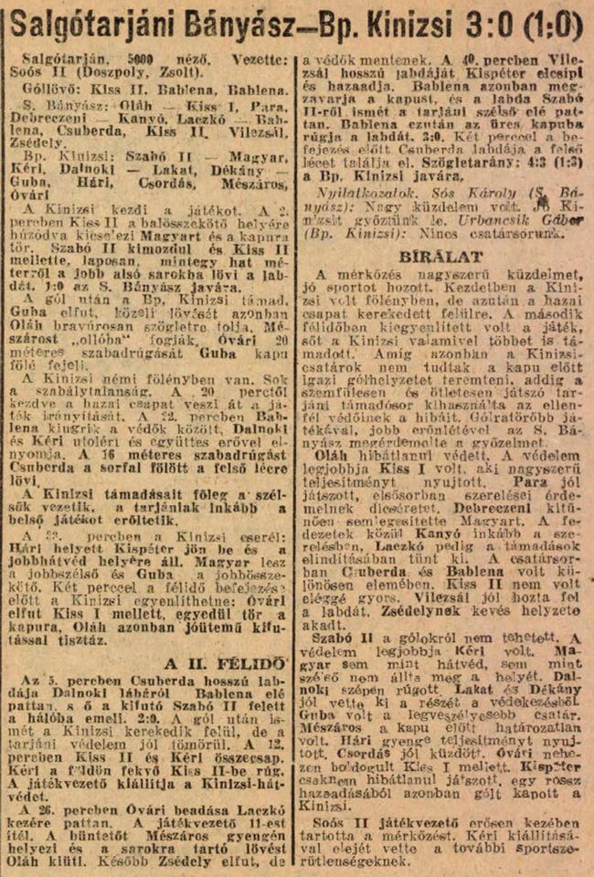 1951.IV.4. Salgótarjáni Bányász – Bp. Kinizsi 3:0