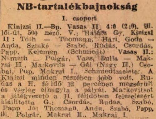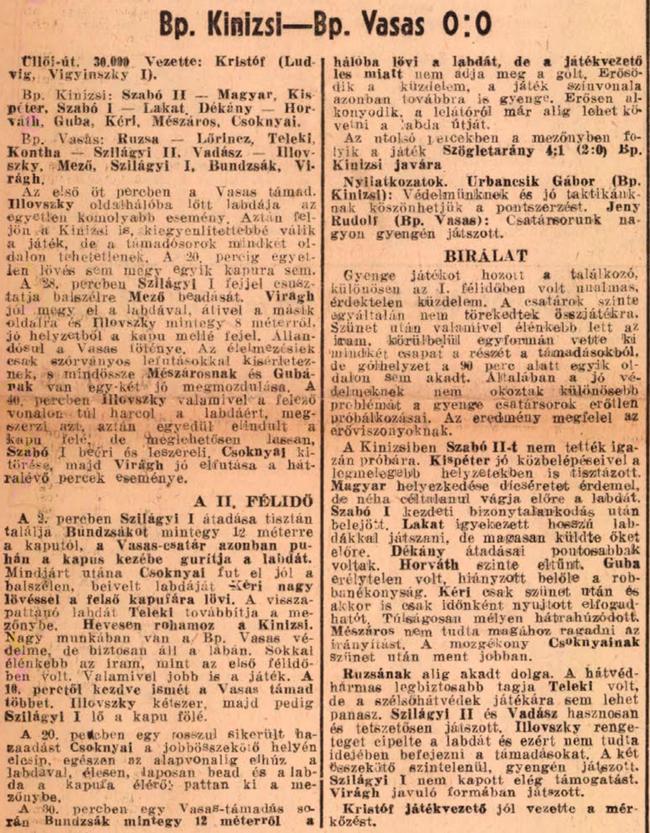1951.V.13. Bp. Kinizsi – Bp. Vasas 0:0
