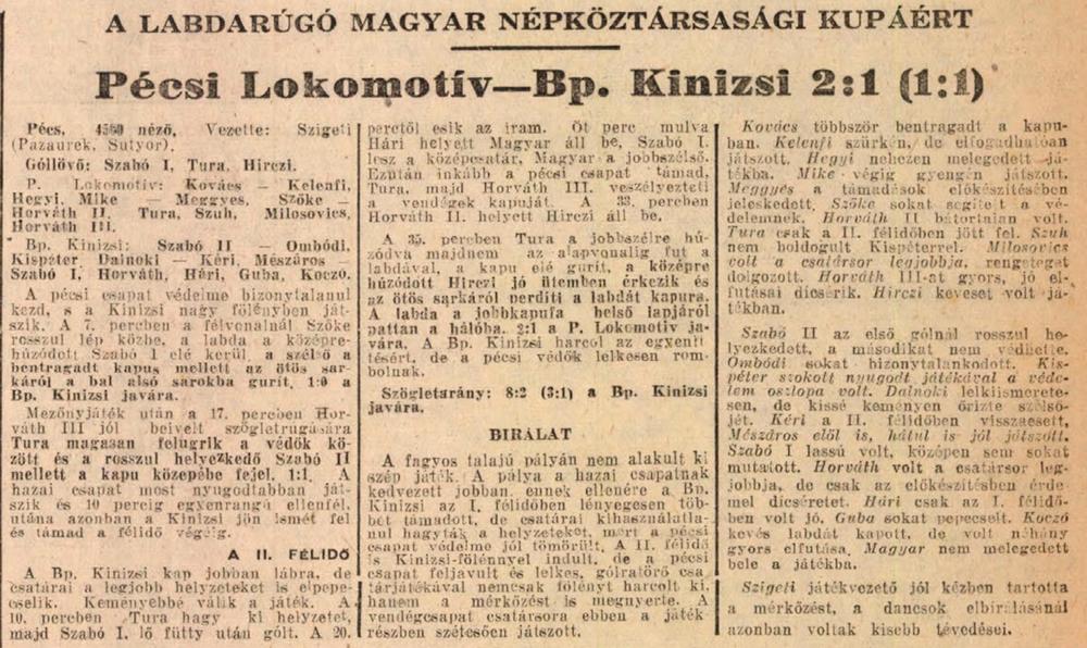 1951.XII.24. MNK, Pécsi Lokomotív – Bp. Kinizsi 2:1