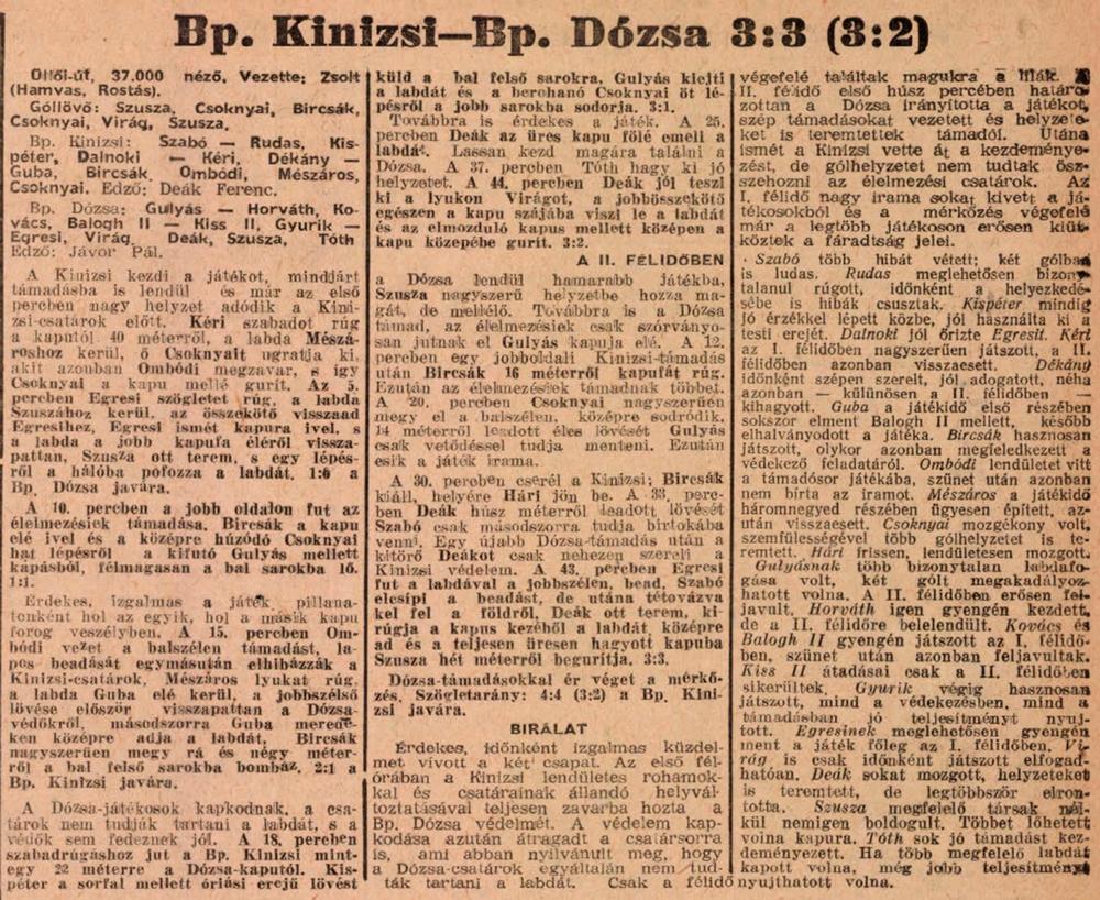 1952.IV.20. Bp. Kinizsi – Bp. Dózsa 3:3