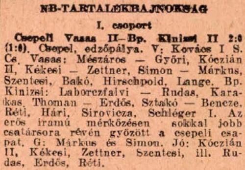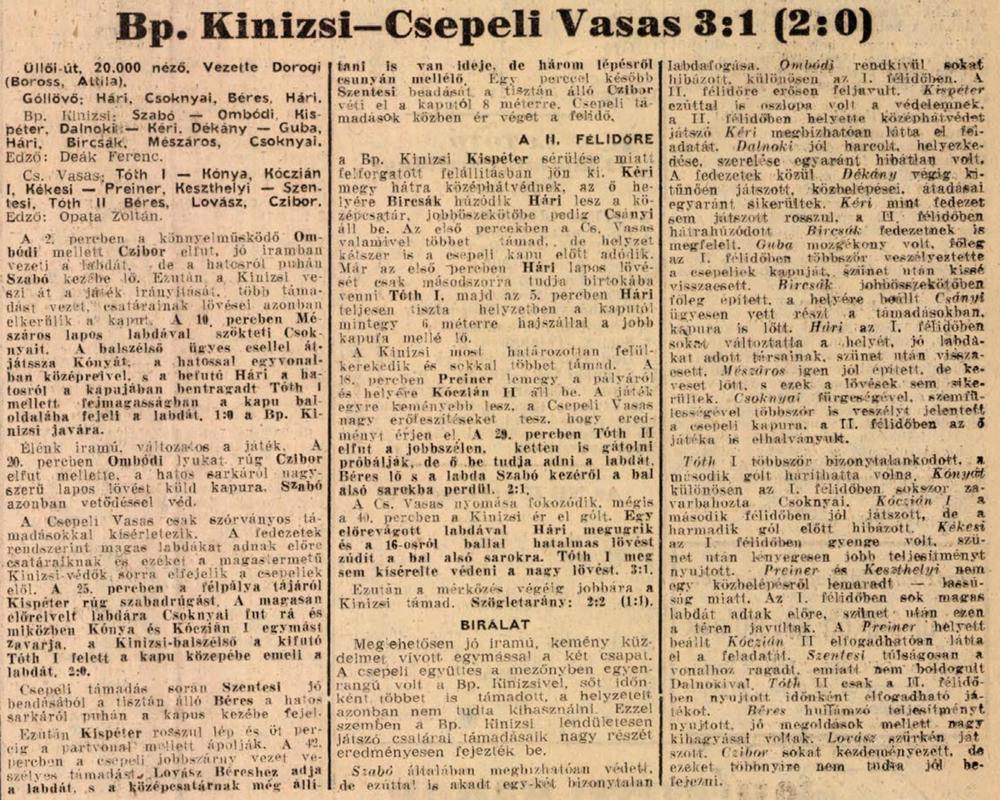 1952.V.4. Bp. Kinizsi – Csepeli Vasas 3:1