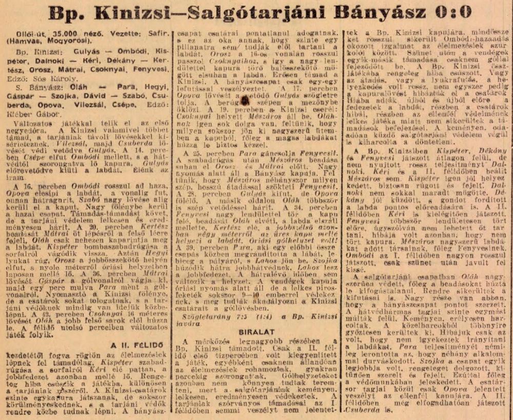 1953.V.2. Bp. Kinizsi – Salgótarjáni Bányász 0:0