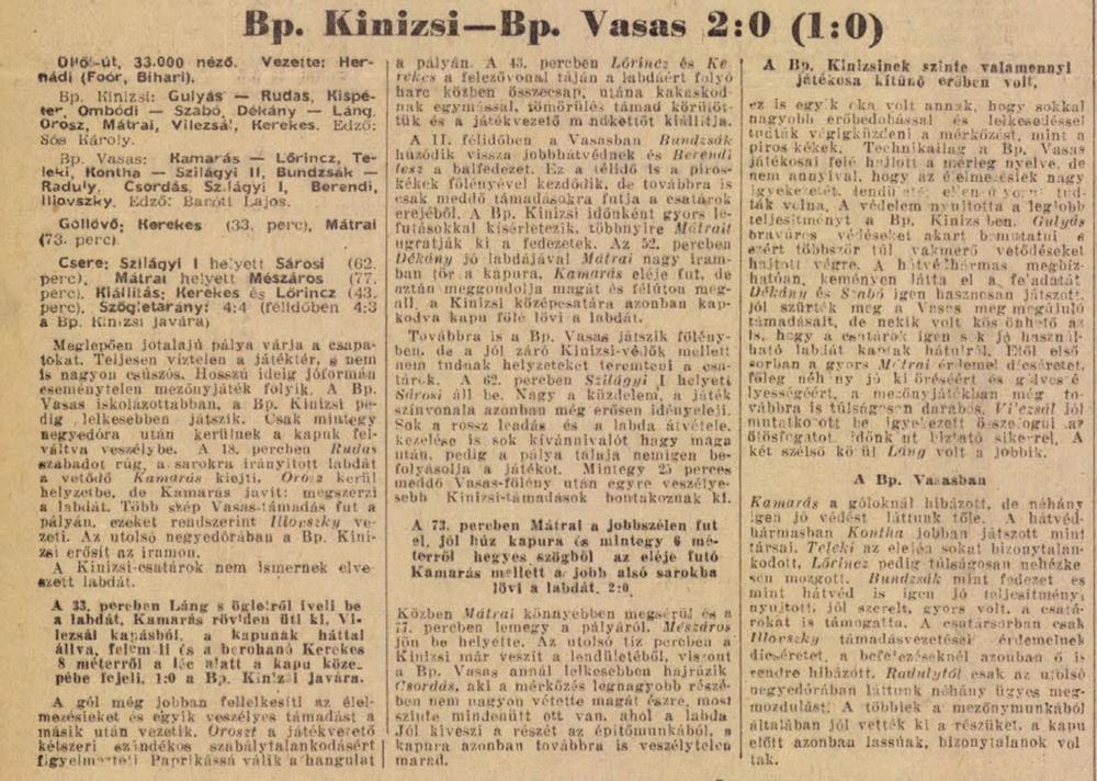 1954.III.7. Bp. Kinizsi – Bp. Vasas 2:0