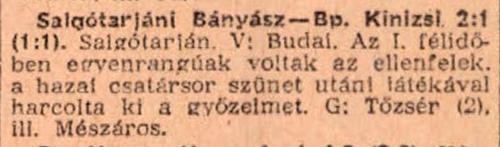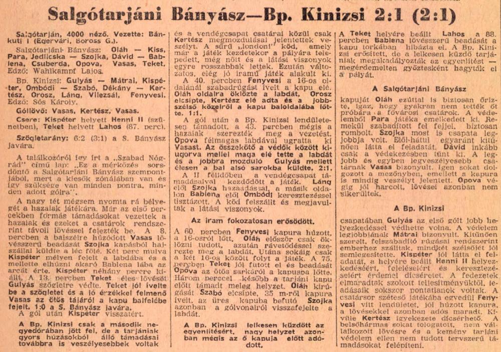1954.XII.19. Salgótarjáni Bányász – Bp. Kinizsi 2:1