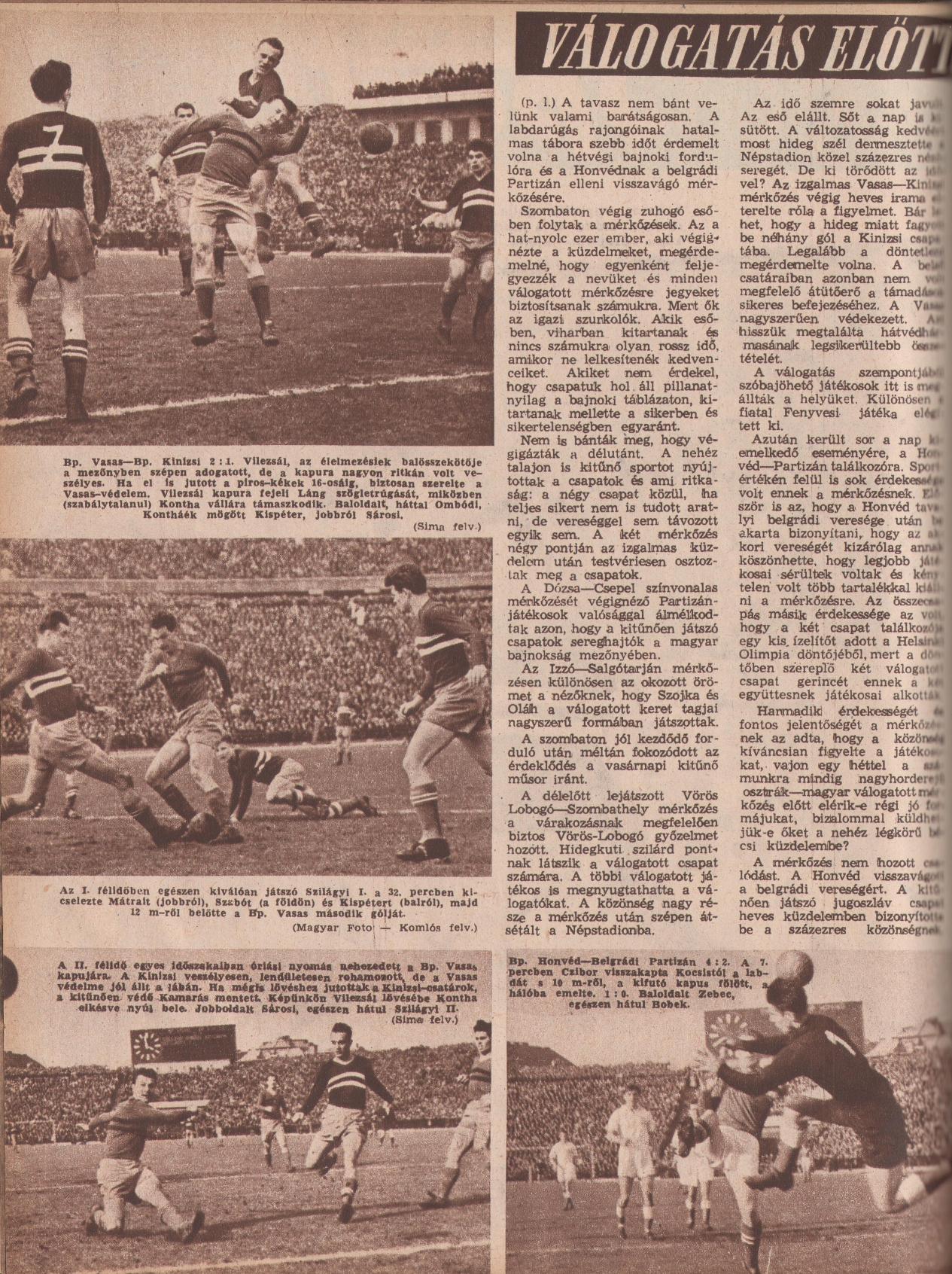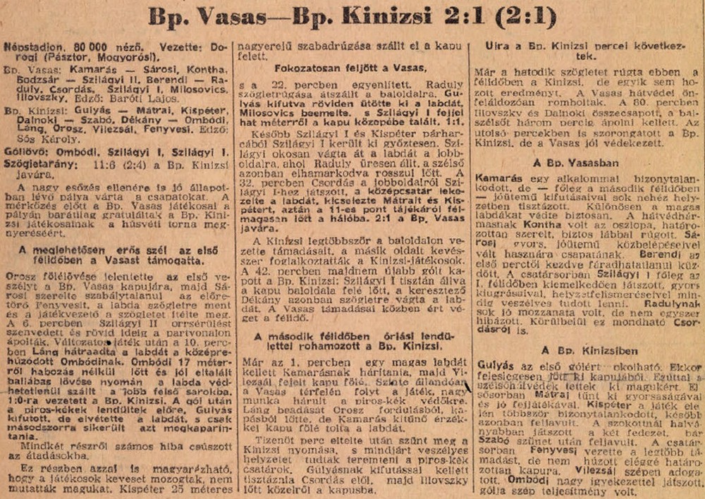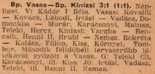 1955.IV.17. Bp. Vasas – Bp. Kinizsi 2:1 Közzétéve: 2009. február 24. kedd | Szerző: K@rcsi 3 hozzászólás a(z) 1955.IV.17. Bp. Vasas – Bp. Kinizsi 2:1 bejegyzéshez YSE on 2017. január 1. vasárnap - 10:40 Szegény Kispéternek nagyon rossz meccse volt. Ez volt az első intő jel, hogy gondoskodni kell a pótlásáról… lacimadár on 2016. december 31. szombat - 20:15 Hideg szél most is dermesztené azt a közel 100000 nézőt, aki ma 10 forduló összes mérkőzésére kimegy … igaz, Csányi et.??? Hogy megy a nézőszámemelő-projekt??? Egyébként BÚÉK mindenkinek! lacimadár on 2014. december 10. szerda - 23:06 a tudósítás szerint rossz idő volt … „hideg szél dermesztette a közel százezres közönséget” … no comment! Vélemény, hozzászólás? Válasz megszakításaAz e-mail címet nem tesszük közzé. A kötelező mezőket * karakterrel jelöltük Hozzászólás * Név * E-mail cím * Honlap Δ