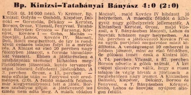 1956.II.26. MNK, Bp. Kinizsi – Tatabányai Bányász 4:0