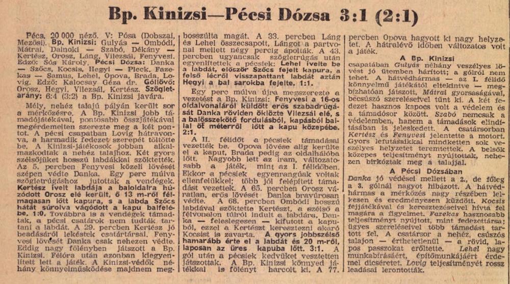 1956.III.4. Pécsi Dózsa – Bp. Kinizsi 1:3