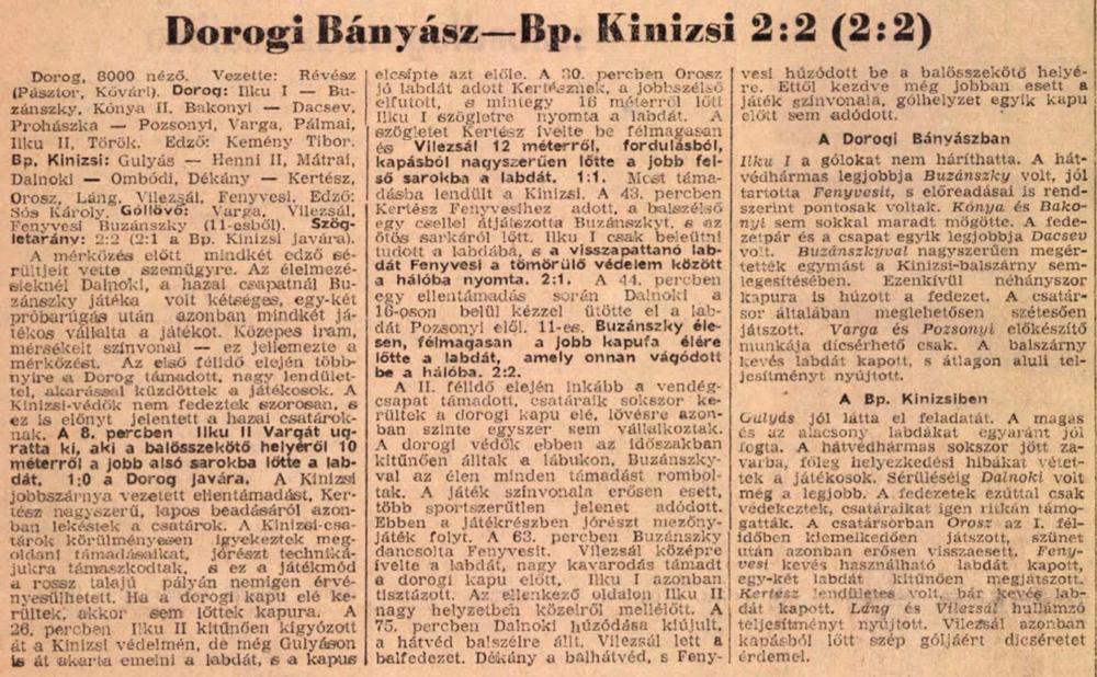 1956.V.27. Dorogi Bányász – Bp. Kinizsi 2:2