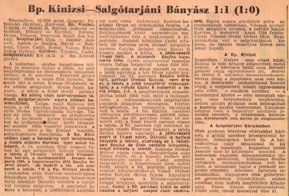 1956.V.6. Bp. Kinizsi – Salgótarjáni Bányász 1:1