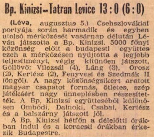 1956.VIII.5. Tatran Levice – Bp. Kinizsi 0:13