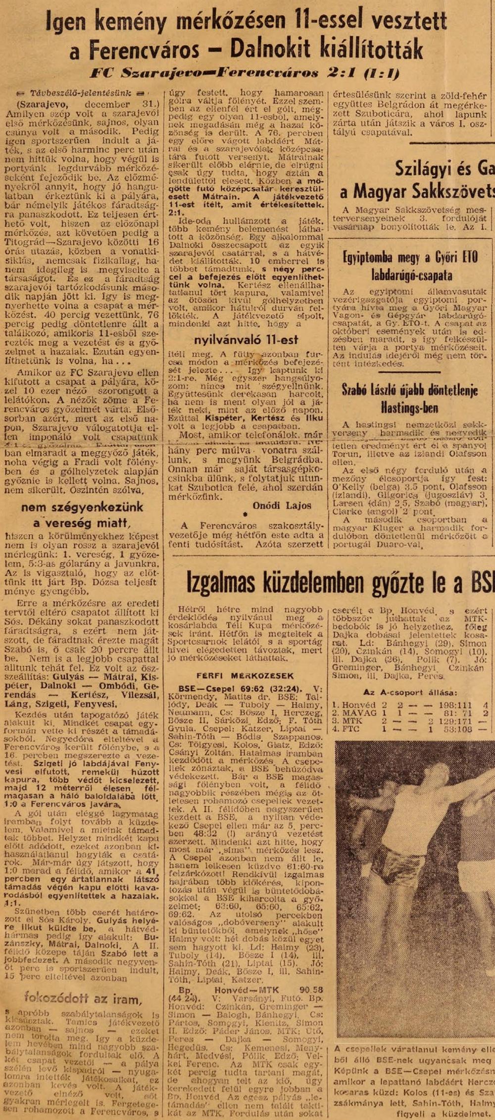1956.XII.30. FK Sarajevo – Ferencváros 2:1