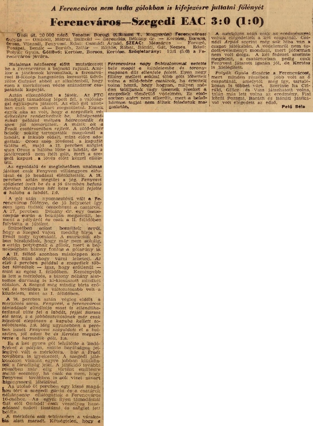 1957.III.17. Ferencváros – Szegedi EAC 3:0
