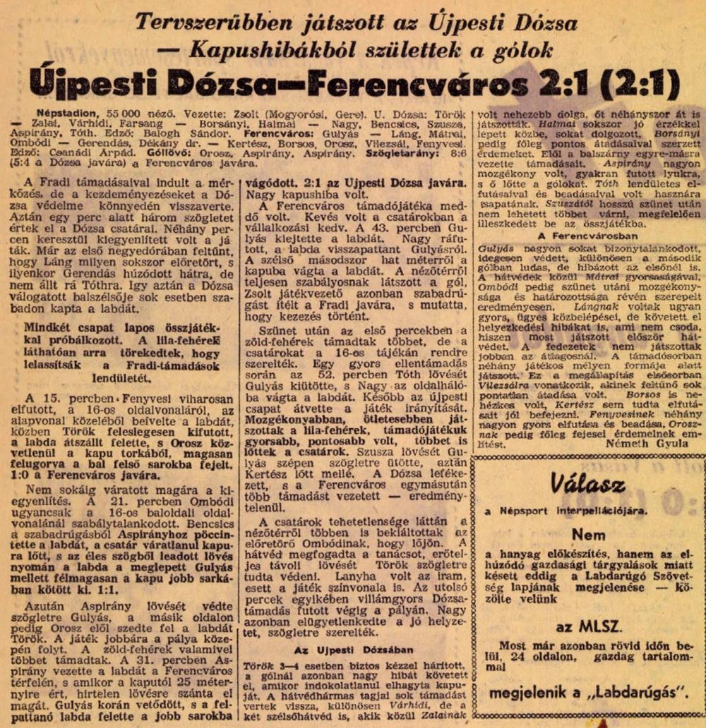 1957.V.12. Ferencváros – Újpesti Dózsa 1:2 Közzétéve: 2009. február 26. csütörtök | Szerző: K@rcsi Egy hozzászólás a(z) 11110100101ejegyzéshez Gunda Attila on 2022. február 6. vasárnap - 14:18 A Dorog miért játszott Esztergomban? Vélemény, hozzászólás? Válasz megszakításaAz e-mail címet nem tesszük közzé. A kötelező mezőket * karakterrel jelöltük Hozzászólás * Név * E-mail cím * Honlap Δ
