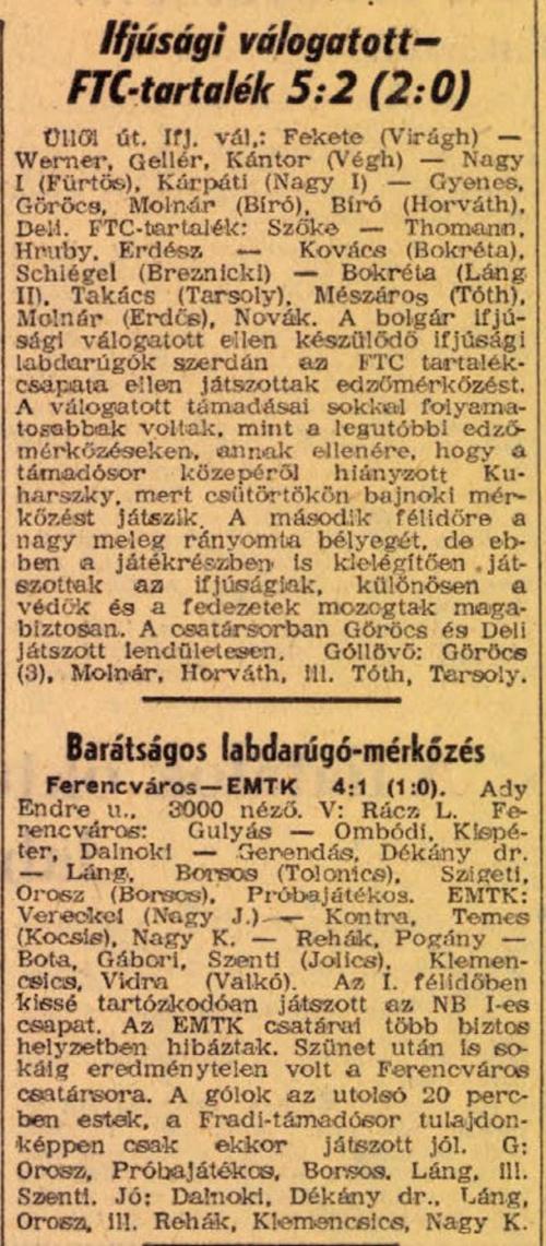 Kategória: 1957-Tavasz | Címke: 1957-Tavasz, edzőmérkőzés, ESMTK