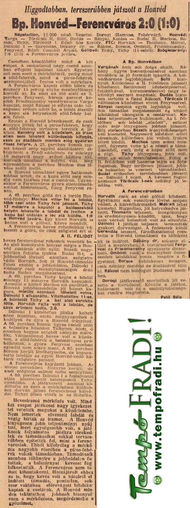 1957.XII.1. Ferencváros – Bp. Honvéd 0:2