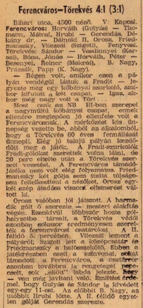 Kategória: 1957/58 | Címke: 1957/58, büntető (kihagyott), büntető (védett), Friedmanszky Zoltán, Gerendás András, Gulyás Géza, hazai díjmérkőzés, Hruby József, Orosz Pál dr., Törekvés