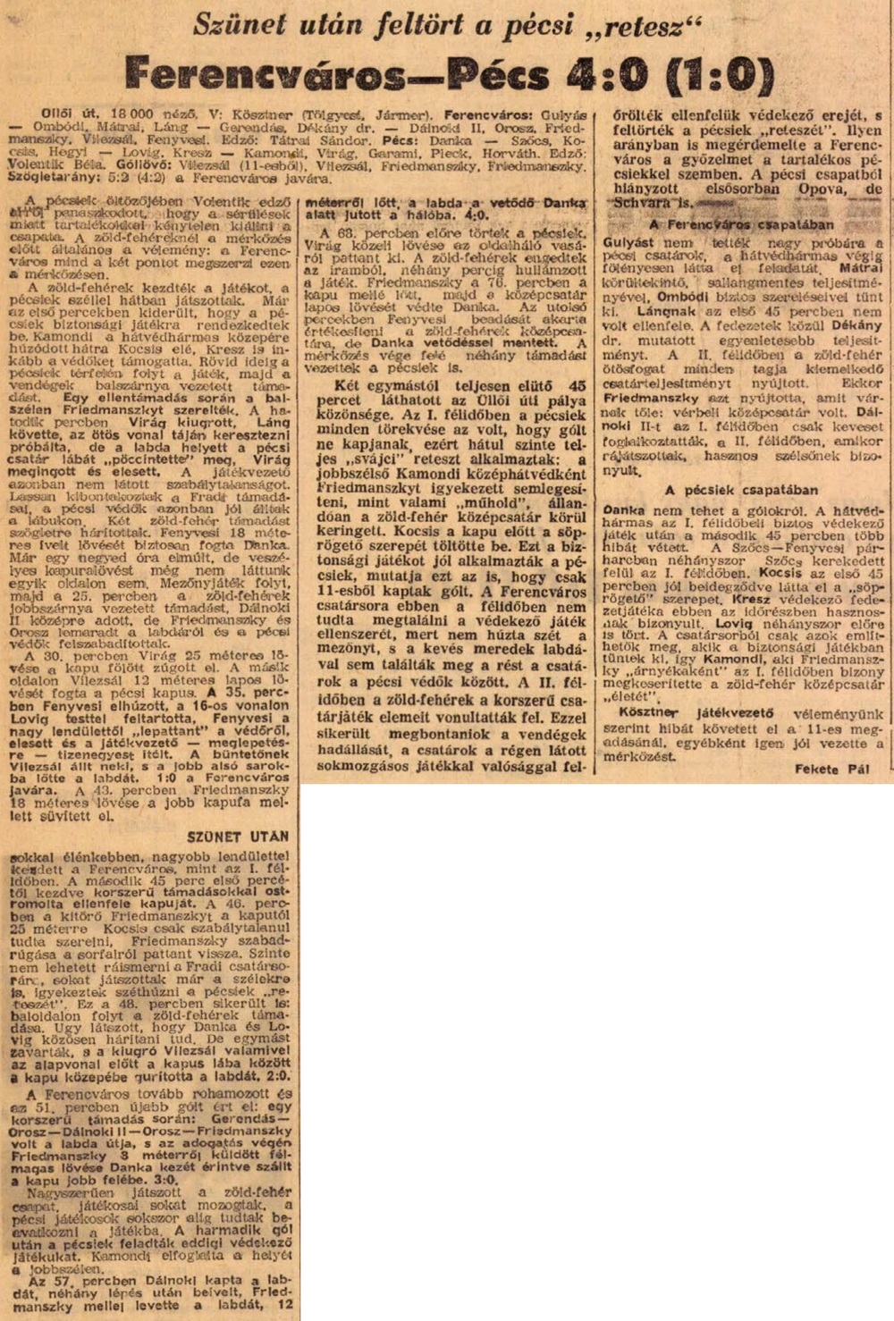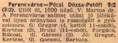 1958.III.16. Ferencváros – Pécsi Dózsa 4:0